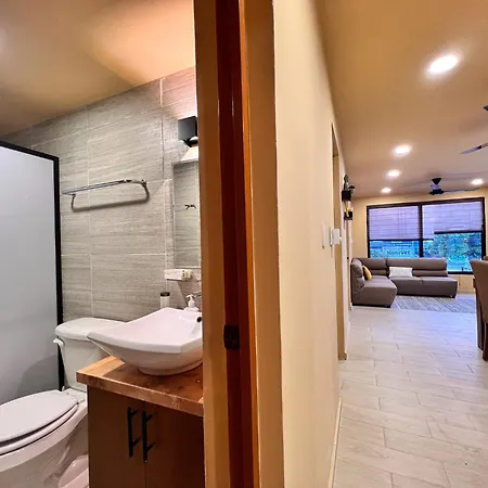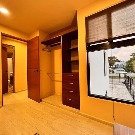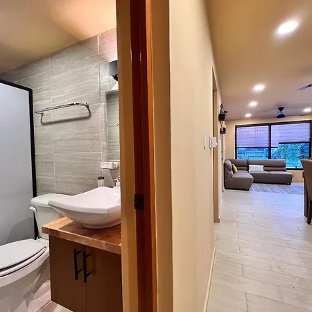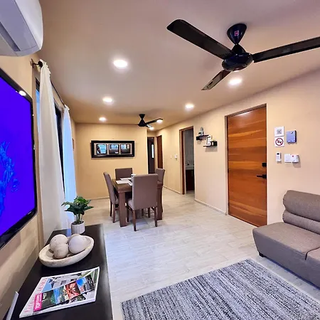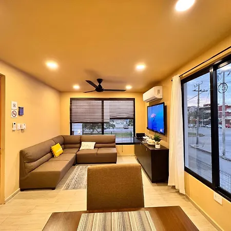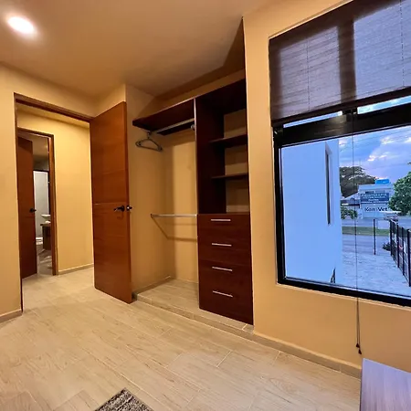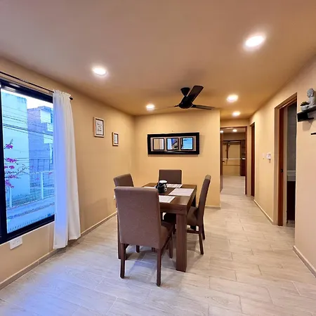 Depa Palenque 3 Cancun apartment includes a sitting area and a kitchen, as well as views over the city. Guests staying in the property will enjoy the convenience of a hairdryer and towels in the bathroom. A separate toilet and a shower can also be found.