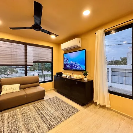 Depa Palenque 3公寓靠近Reserva Natural Ombligo Verde,距离坎昆市中心仅有10分钟路程. 客房有休息区,WiFi 和电视以及配微波炉,冷冻机 和厨具的厨房.